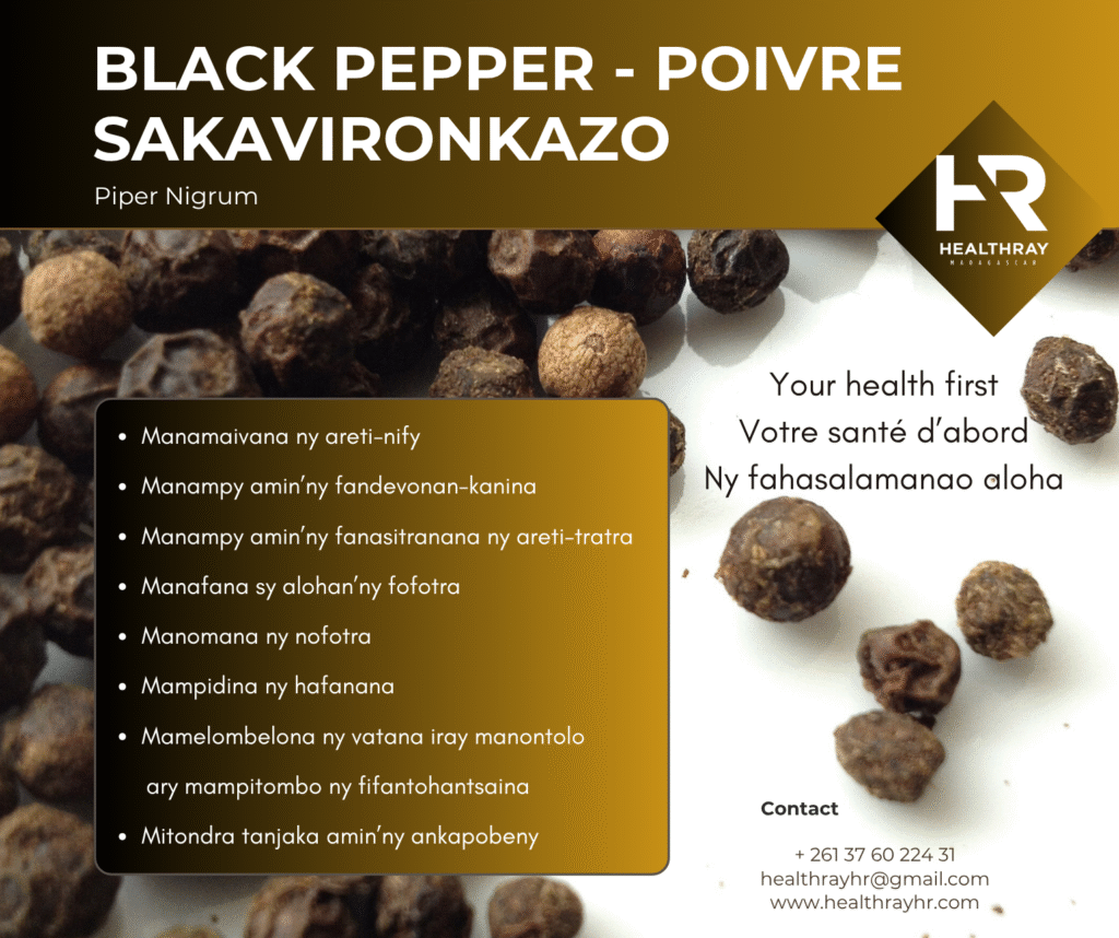 Plante vivace originaire du sud-ouest de l’Inde et plantée à Madagascar, le poivre est l’une des épices les plus anciennes, il est non seulement utilisé par la médecine ayurvédique, mais aussi considéré comme le «roi des épices» pour ses innombrables vertus.